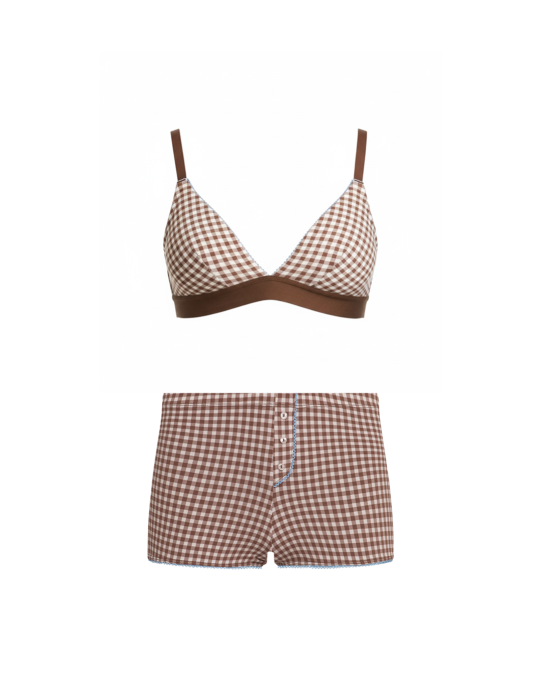 This product is made from 95% GOTS-certified organic cotton and 5% elastane. Wash this on cold with other like colors. We recommend you don't put it in the dryer, because the elastics and lace trim could get caught on things and stretch or unravel. Air dry them if you can!